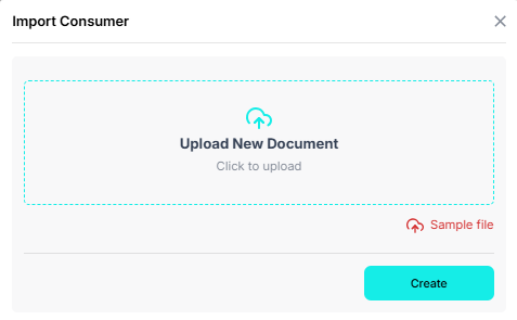 As shown in the image above, when the agent clicks on Import Consumer, they will see above the Create button another button called “Sample file”.