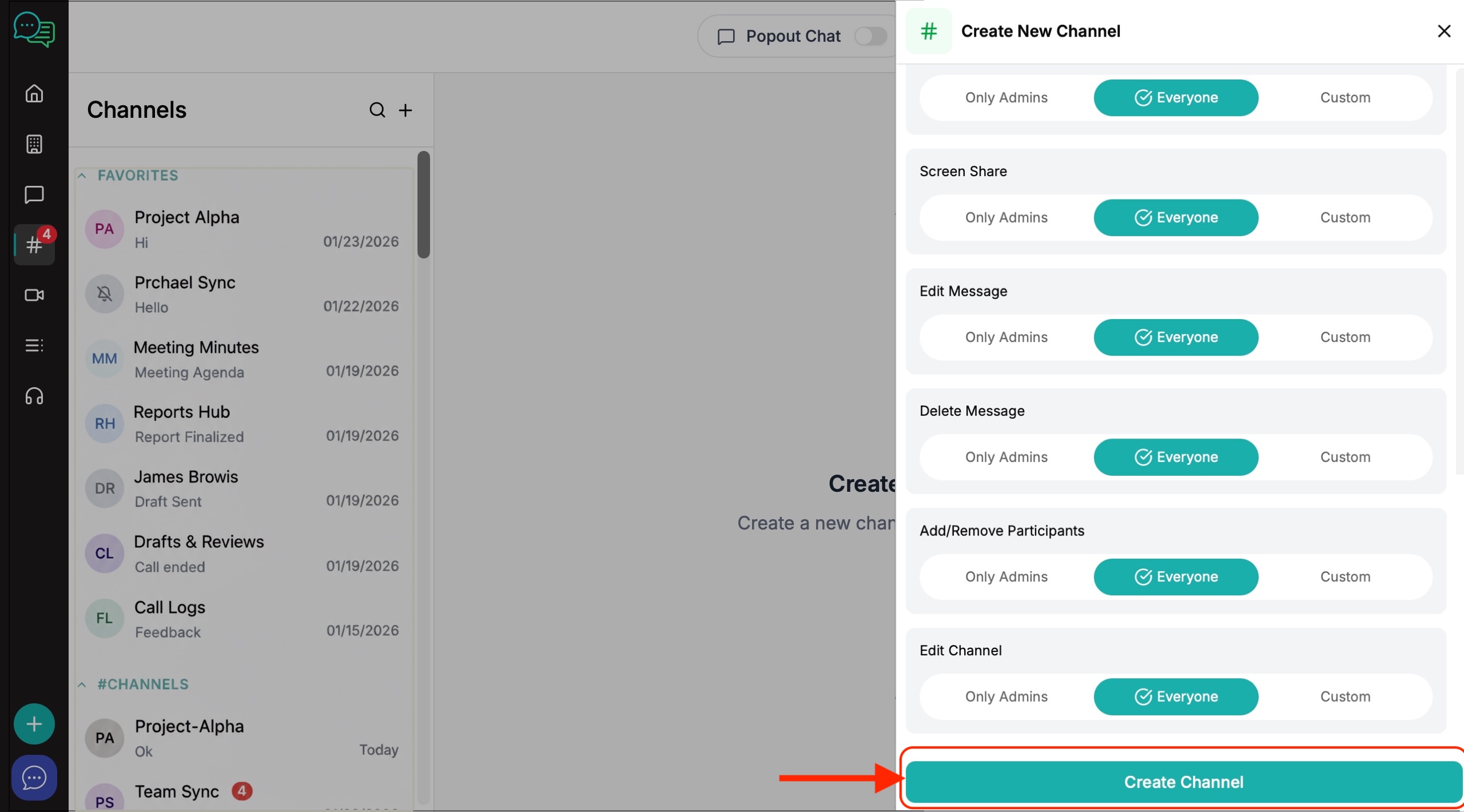 19. Once the user has decided on their desired settings they need to click on "Create Channel".