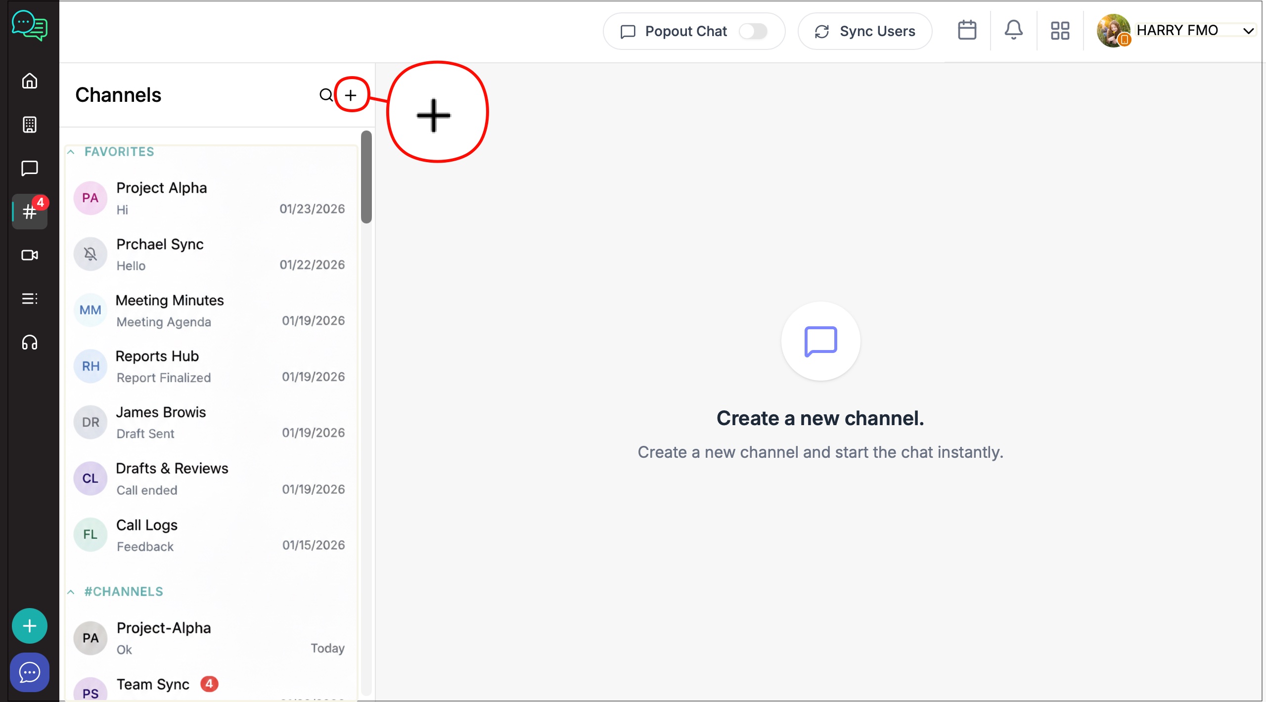 20. Once created the channel will appear under "Channels".