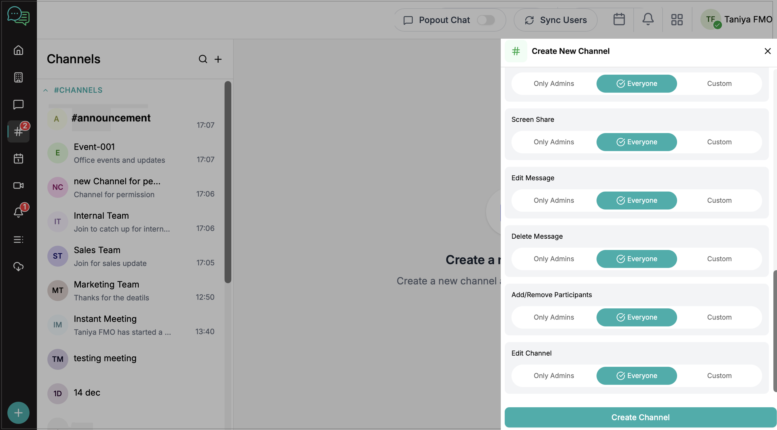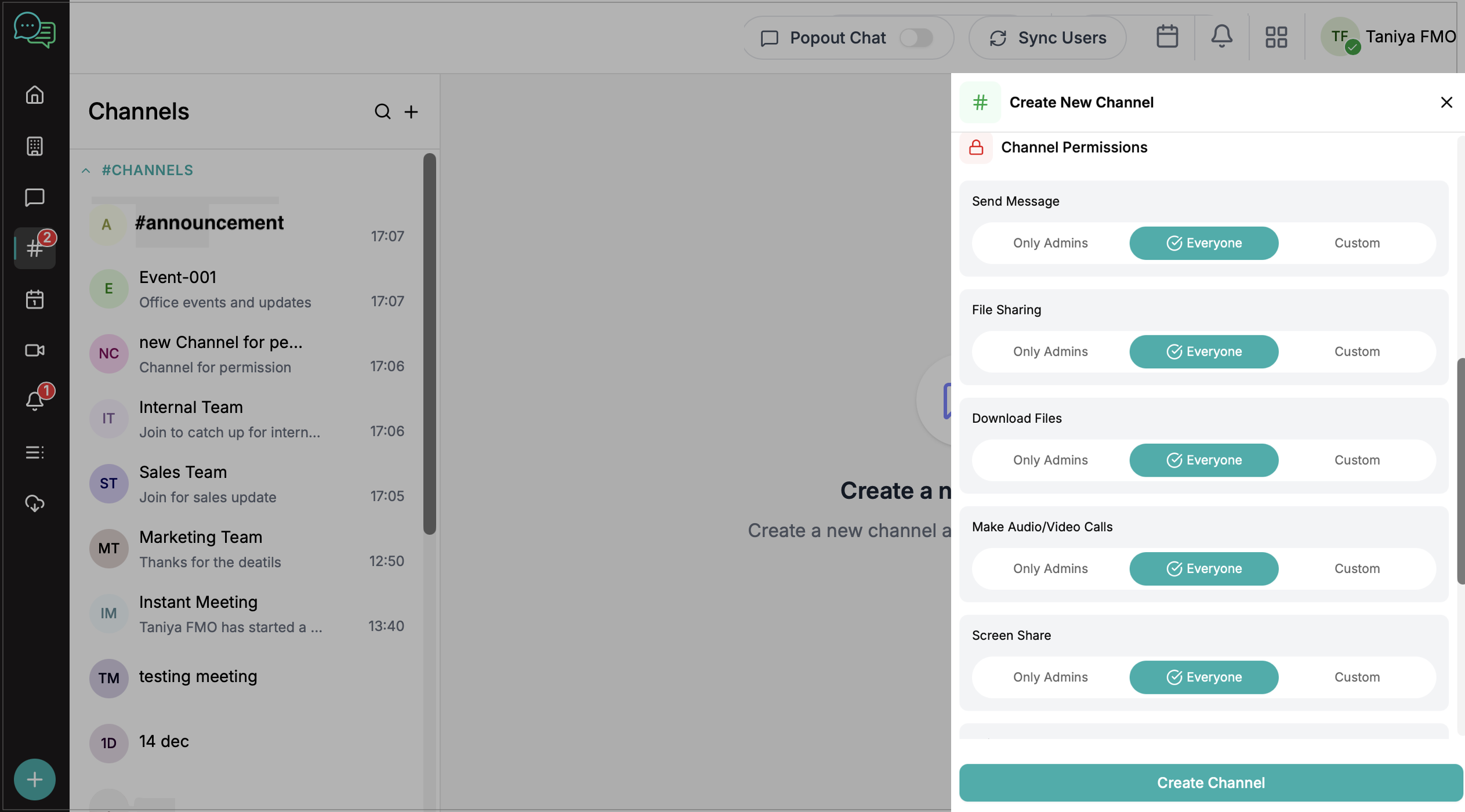 Adjusting permissions lets you control what members can do inside the channel (for example, who can send messages or share files), keeping conversations structured and compliant with internal policies. Set Messaging and File Permissions
