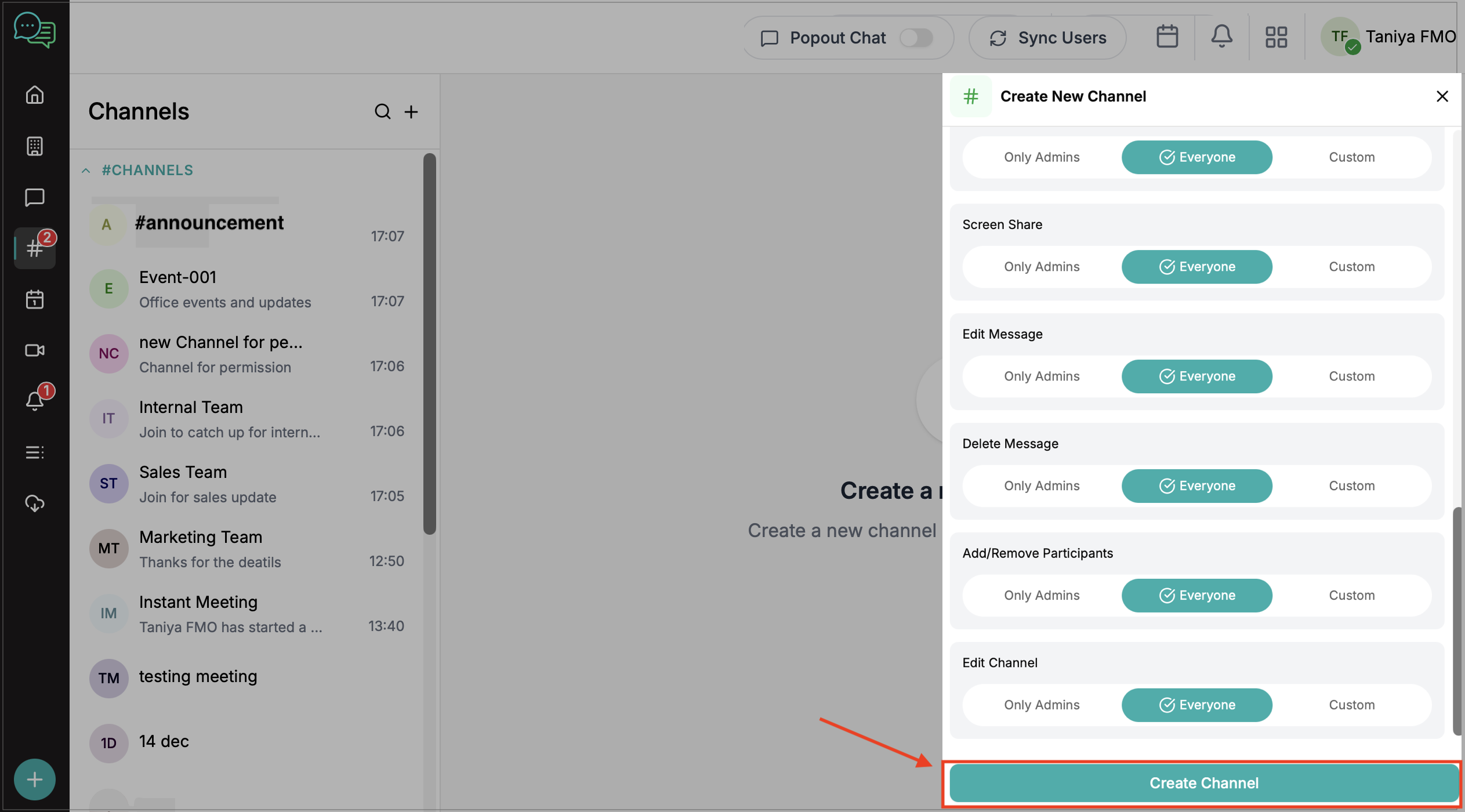 After reviewing all settings, click Create Channel at the bottom of the window.