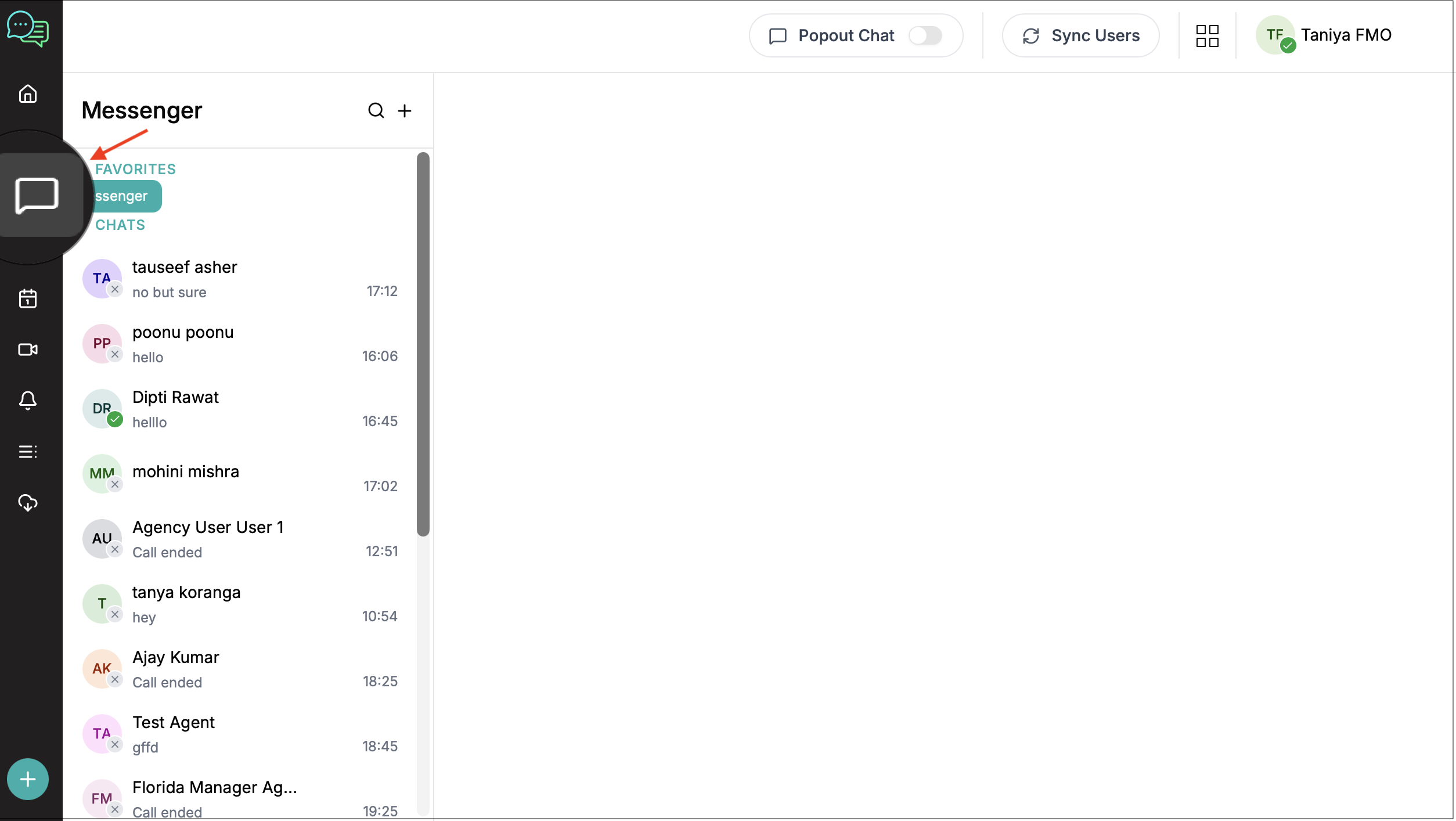 This opens your main chat area where you can access all conversations.